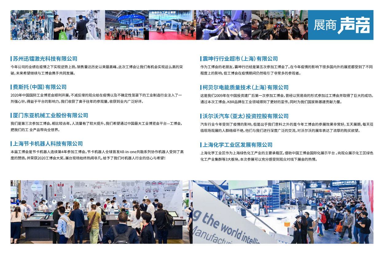 中国工博会自1999年创办以来,通过专业化、市场化、国际化、品牌化运作,已发展成为通过国际展览业协会(UFI)认证,中国装备制造业最具影响力的国际工业品牌展,是我国工业领域面向世界的一个重要窗口和经贸交流合作平台。自2015年起,中国工博会已正式移师国家会展中心(上海)。国家会展中心(上海)位于上海虹桥CBD核心区、毗邻虹桥交通枢纽,是目前世界上面积最大的会展综合体。